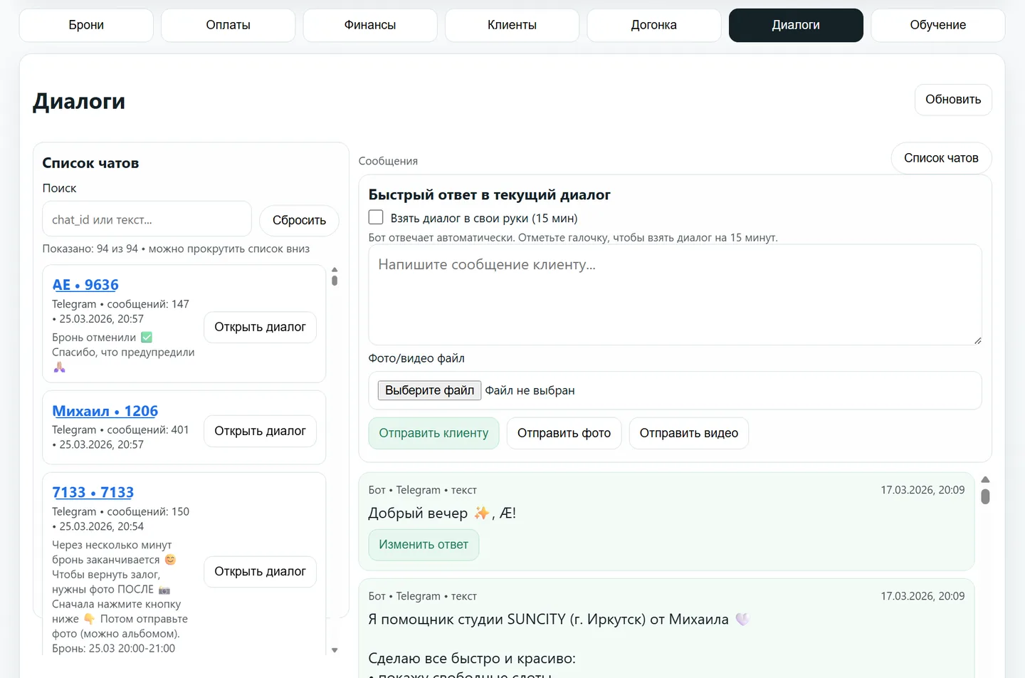 Можно быстро пройтись по текущей логике записи, оплат и переписки и понять, как продукт лучше внедрять именно у тебя.